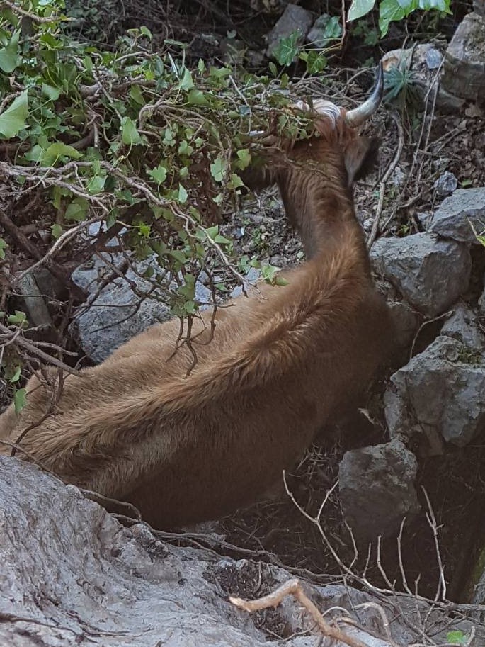 Naši radnici danas su oslobodili govedo koje je bilo zaglavljeno u staroj nepristupačnoj ruševini u Gornjoj Lastvi.