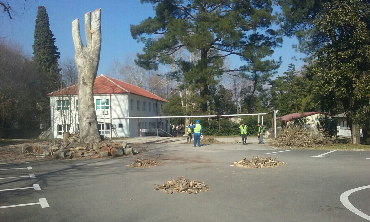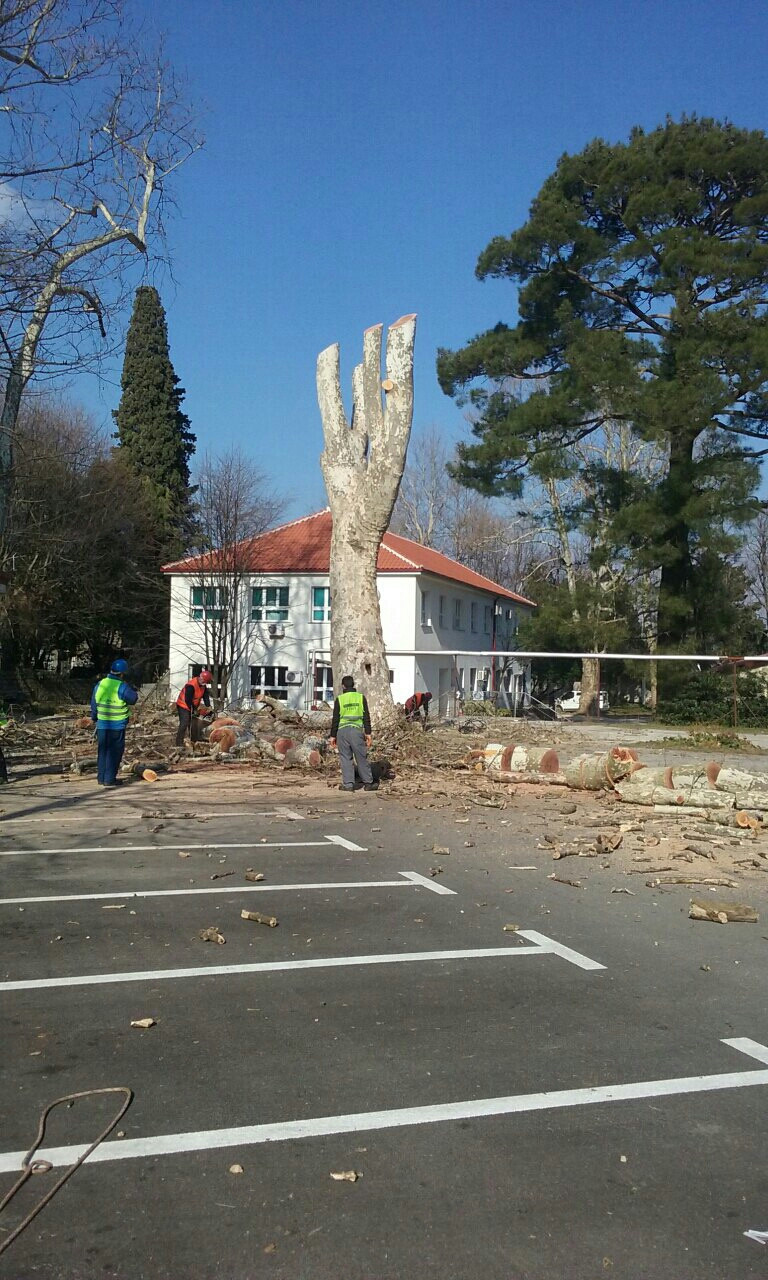 Sa stabala visokih preko 20 metara u značajnoj mjeri su skinute krošnje, a jedno stablo je u potpunosti uklonjeno jer je bilo u trulo u sredini debla pa je prijetila opasnost da padne. U nastavku ovih aktivnosti koje su planirane radnici će posjeći još jedno stablo koje takođe prelazi visinu od 20 metara i u potpunosti je osušeno.
