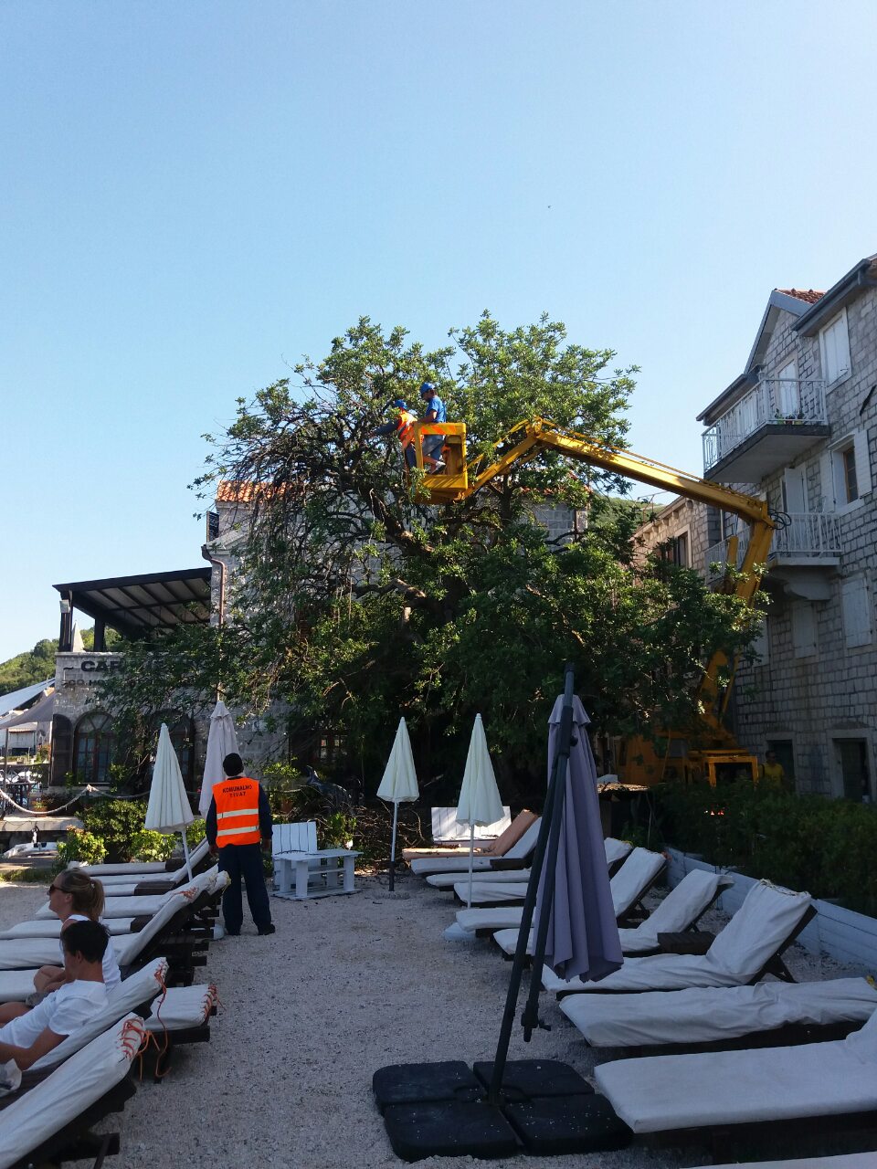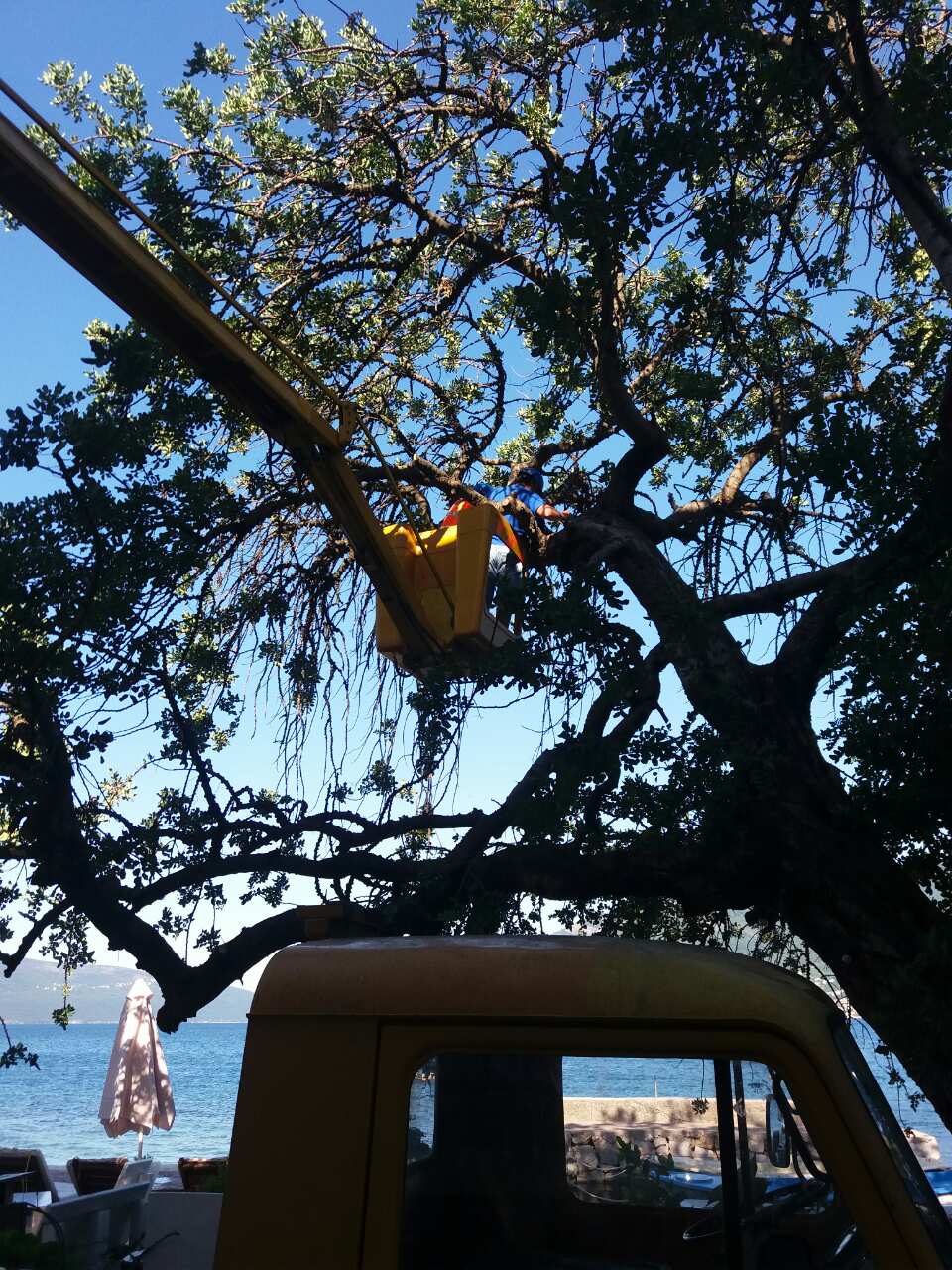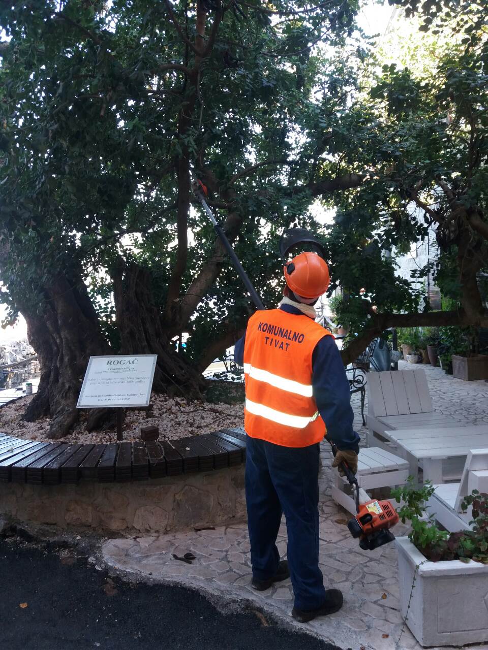 Radnici Službe za gradsko zelenilo uz asistenciju mehanizacije, ekipe električara, izvršili su orezivanje stabla rogača u Donjoj Lastvi.