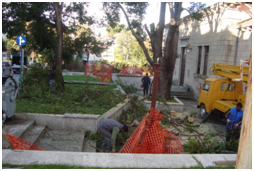 Po nalogu Direkcije za investicije i razvoj Opstine Tivat radnici naseg preduzeca uklonili su danas stablo kamfora ispred zgrade DTV „Partizan“.