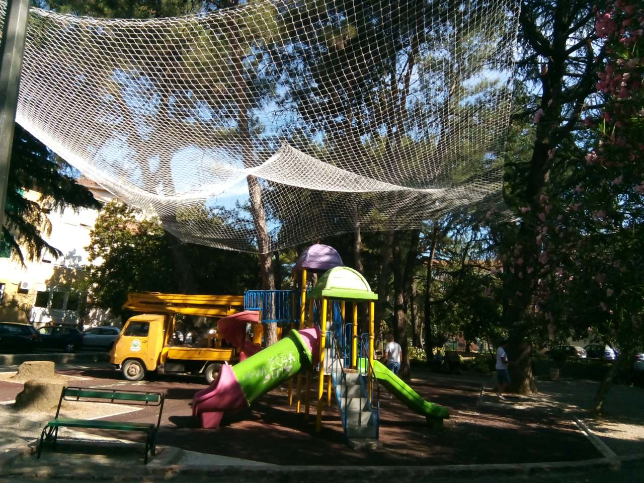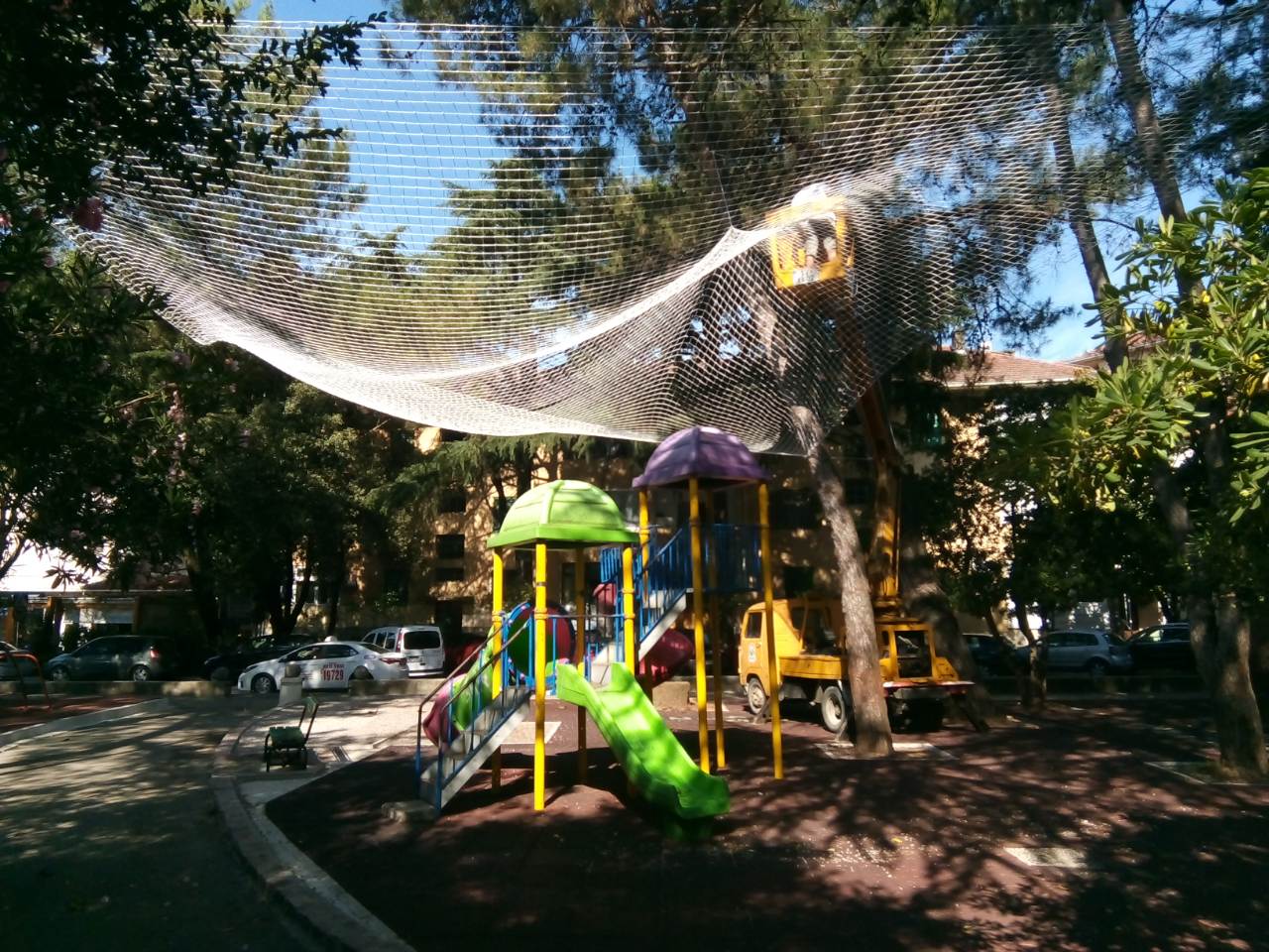 U malom parku koji se nalazi na Trgu Dara Petkovića postavili smo zaštitnu mrežu iznad površine na kojoj se nalazi mobilijar za dječiju zabavu. Predmetna mreža štiti navedeni prostor od pada grana i šišarki sa stabala kako bi se našim najmlađim sugrađanima stvorili uslovi za bezbrižnu igru.